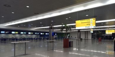 Los trabajos se realizaron en la sala de la T2: Instalación de 80 Luminarias EVO8, Instalación de Tableros Power Link